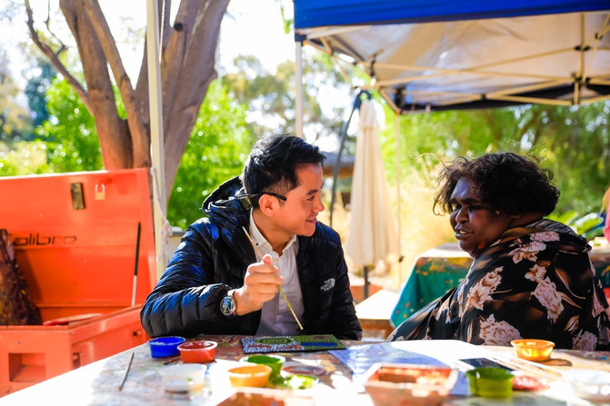 马鲁库圆点绘画(Maruku Dot Painting)可是原住民艺术文化中相当重要的一部分,可以通过艾尔斯岩度假村预定。当地原住民阿南古人会教你学习点画,教你理解在原住民文化里每一种符号的含义,然后就是你自由创作的时间了,但是作为一个没有太多艺术细胞的我来讲,实在不懂自己画了什么。